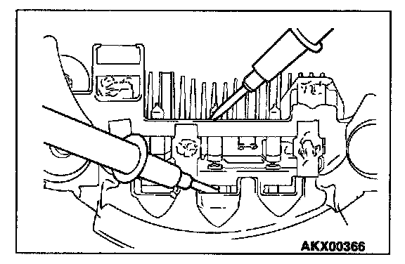 3. Check the continuity of the three diodes by connecting an ohmmeter to both ends of each diode. If there is continuity between the directions, or if there is no continuity, the diode is damaged, so replace the rectifier.