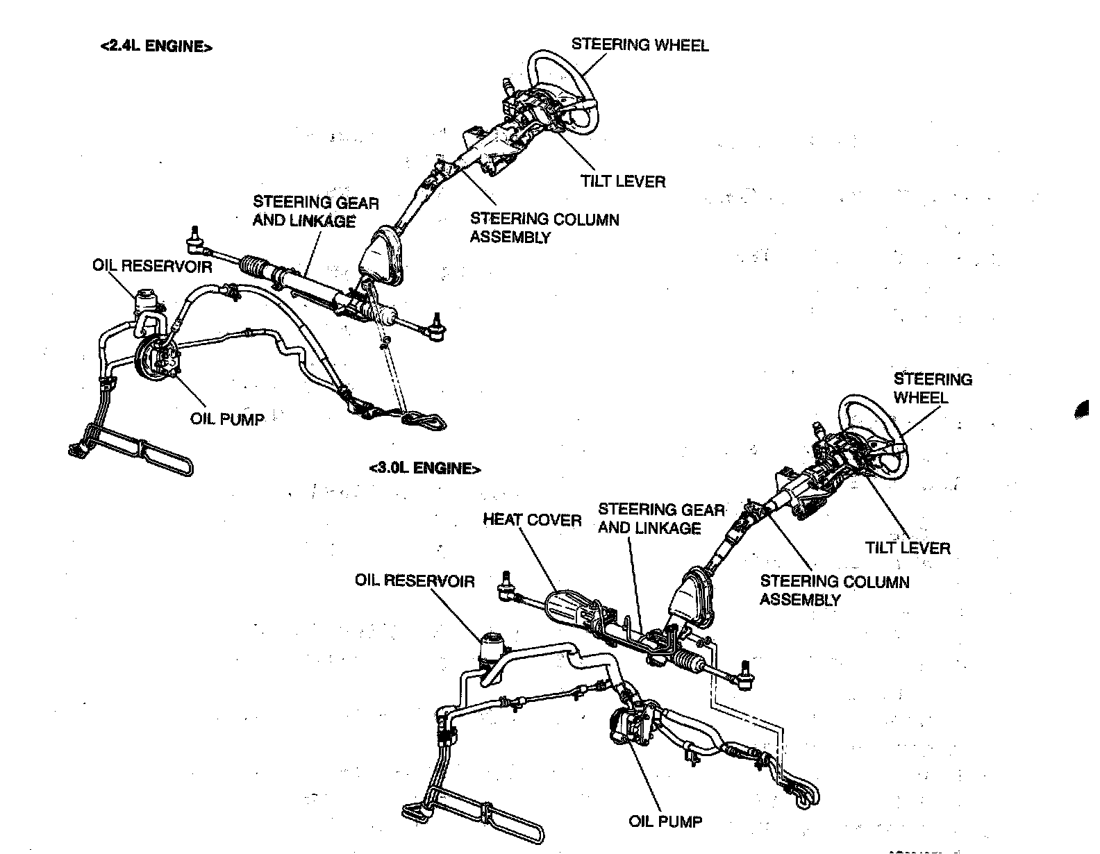 The steering column in all vehicles has a shock absorber mechanism and a tilt steering mechanism. A vane-type oil pump with a fluid flow control system has been included.,The steering gear and linkage is rack arm pinion