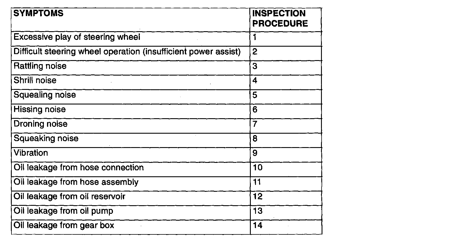 Symptom Chart