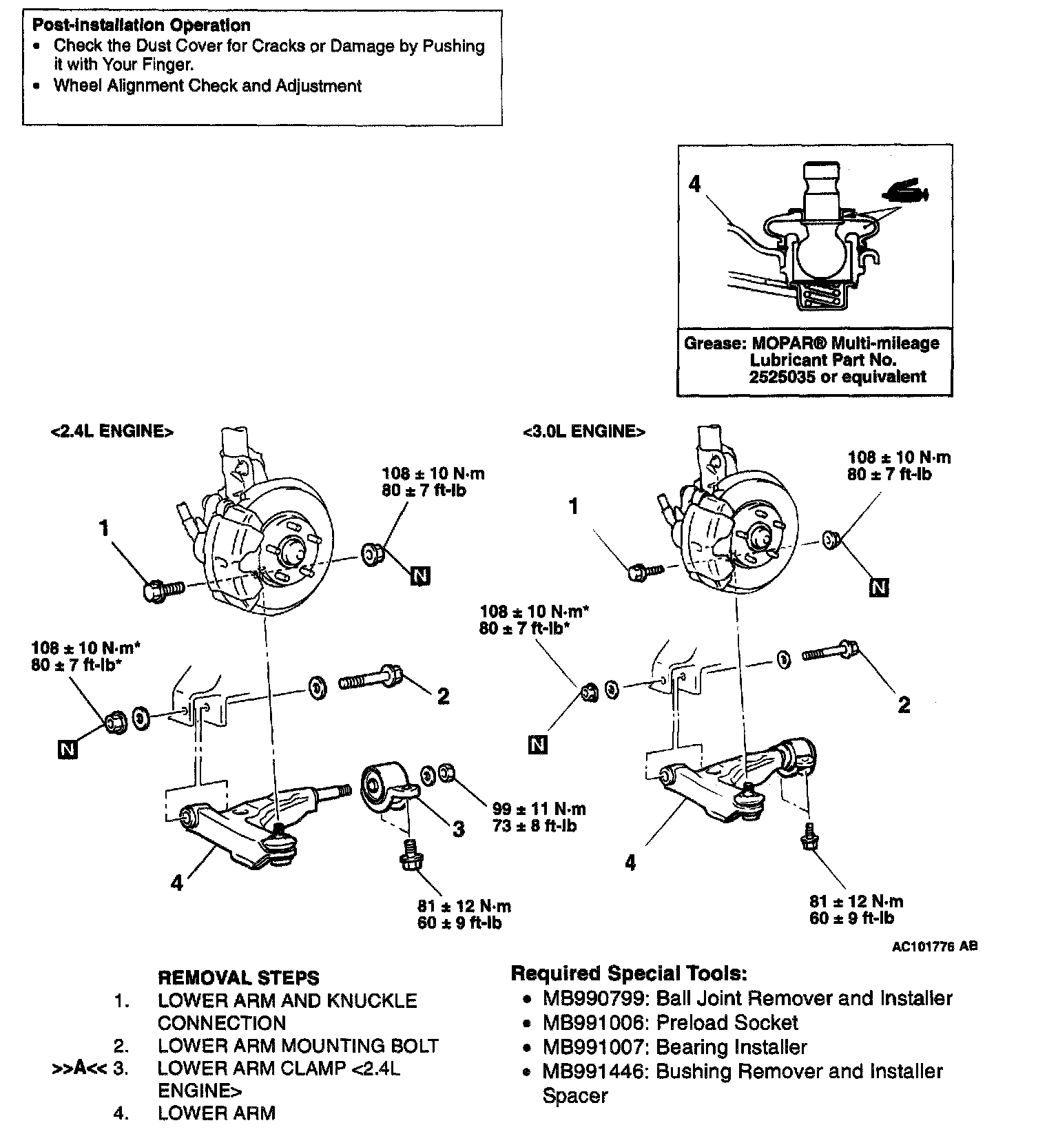 >>A<< LOWER ARM CLAMP INSTALLATION <2.4L ENGINE>