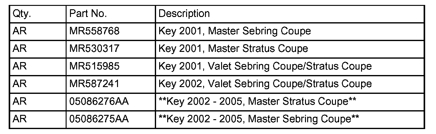 **2001 - 2005** (ST) Sebring/Stratus Coupe