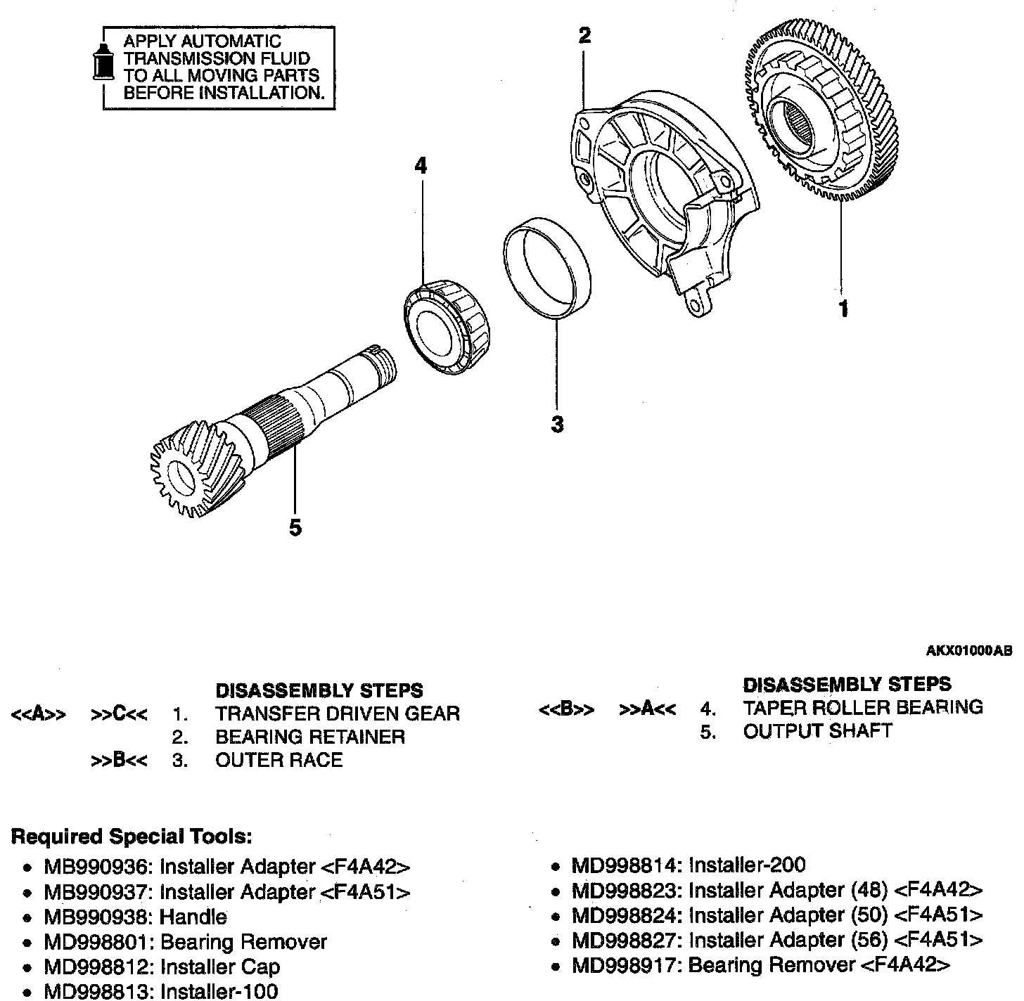 1. Support the transfer driven gear with general service tool or special tool MD998917