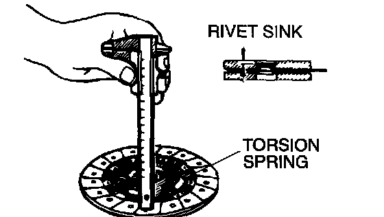 2. Measure the rivet sink and replace the clutch disc if it is below the limit.