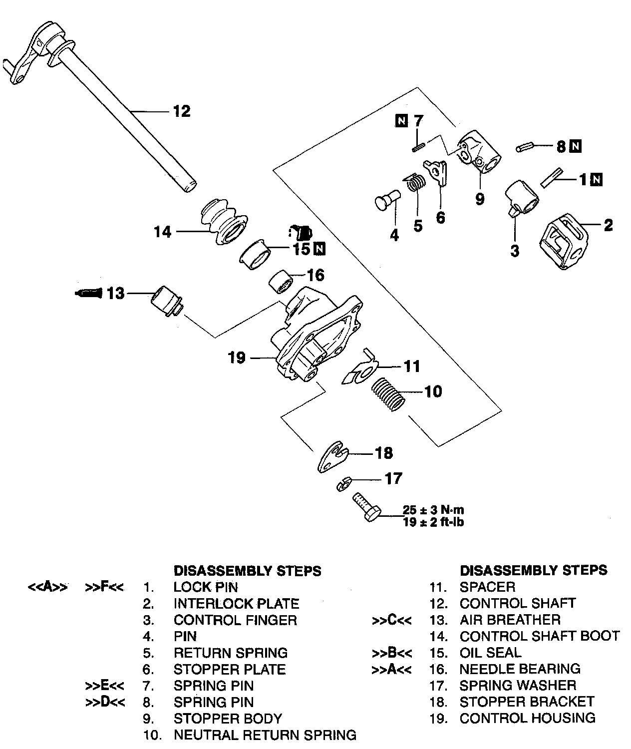Press fit the needle bearing up the illustrated dimension, while making sure that the model number stamped side is oriented toward the control housing side.
