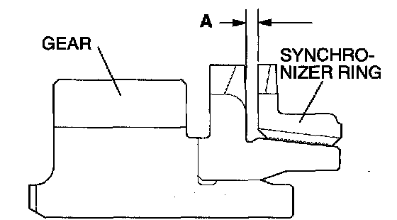 3. Force the synchronizer ring toward the clutch gear and check clearance "A". If "A" is less than the limit, replace.