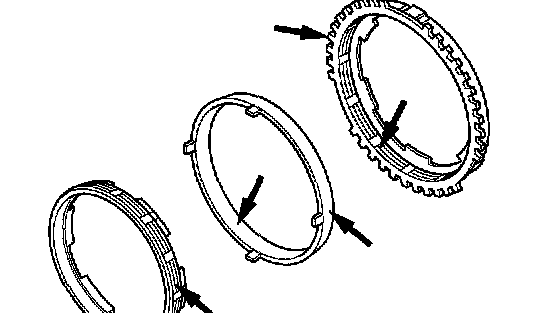 2. Check that the synchronizer cone surfaces are not roughened, damaged or worn.
