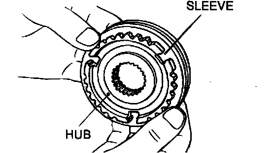 1. Combine the synchronizer sleeve and hub, and check that they slide smoothly.