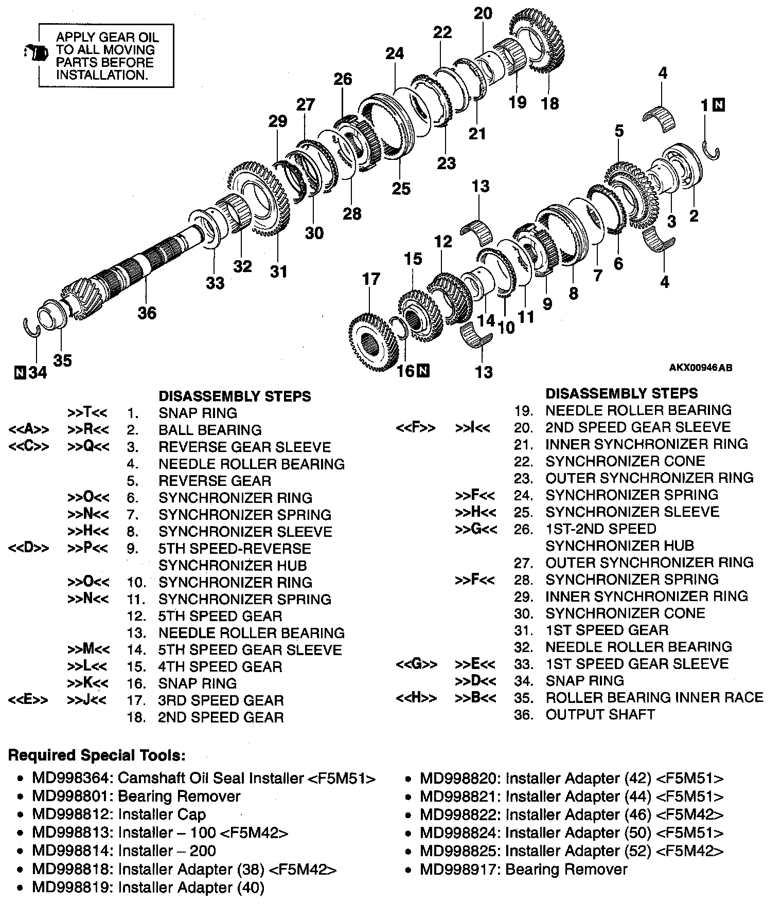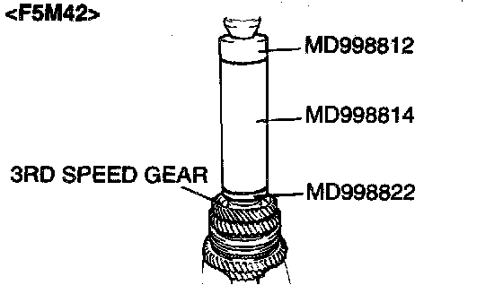 1. Using special tool MD998801, support the output shaft gear, and then set them on the press.