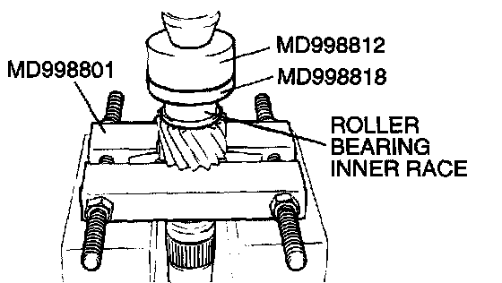 2. Using special tools MD998812 and MD998818, press install the roller bearing inner race with the press.