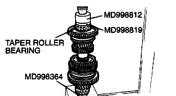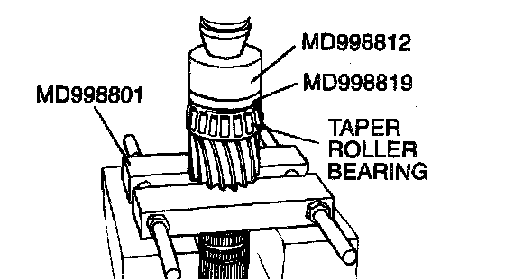 Using special tools MD998812, MD998819 and MD998364, press install the taper roller bearing.