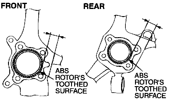 The clearance between the wheel speed sensor and the ABS rotor's toothed surface is not adjustable, but measure the distance between the sensor installation surface and the ABS rotor's toothed surface.