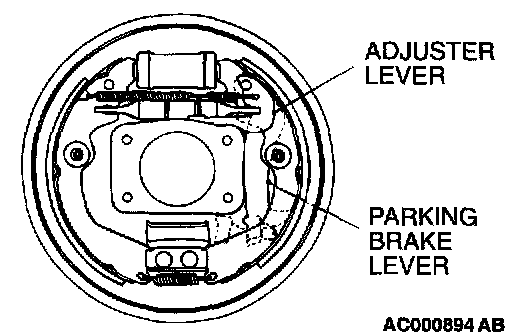 2. Operate the parking brake lever. Observe adjuster lever movement for ratcheting action of the auto adjuster. Repair or replace the lever(s) as required.
