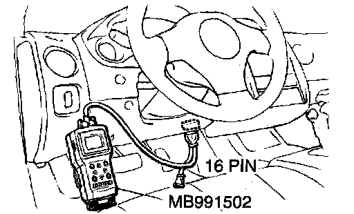 2. Connect scan tool MB991502 to the data link connector.