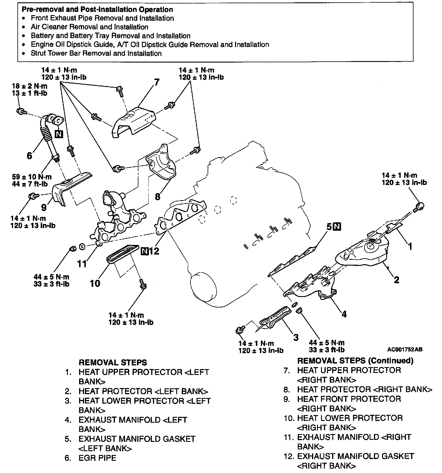 EXHAUST MANIFOLD <3.0L>REMOVAL AND INSTALLATION