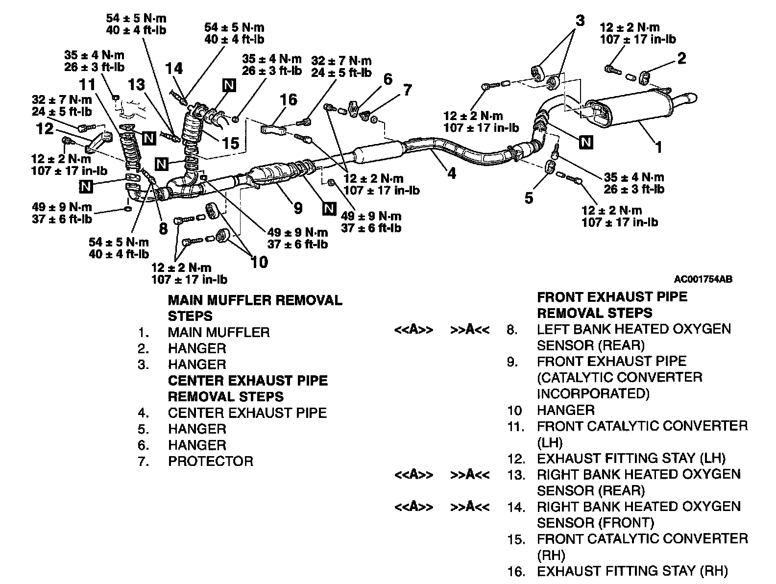EXHAUST PIPE, MAIN MUFFLER AND CATALYTIC CONVERTER <3.0L>REMOVAL AND INSTALLATION
