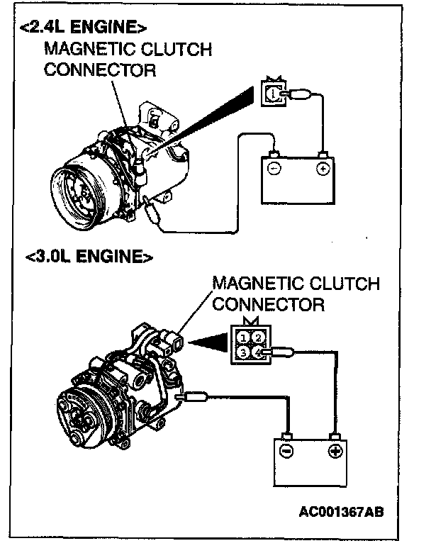 MAGNETIC CLUTCH TEST1. Disconnect the magnetic clutch connector to the magnetic clutch.