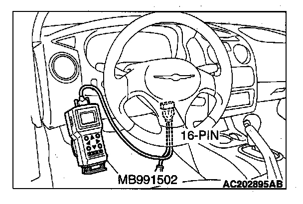CAUTION : To prevent damage to scan tool MB991502, always turn the ignition switch to the "'LOCK" (OFF) position before connecting or disconnecting scan tool MB991502.