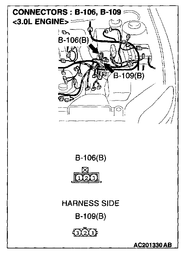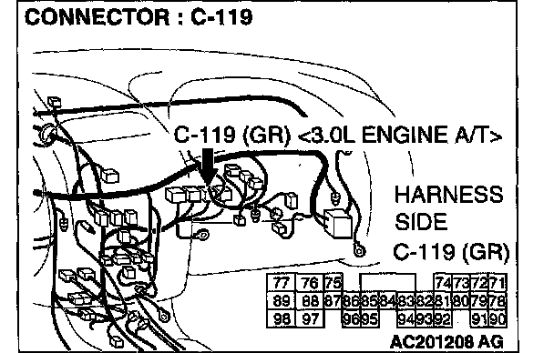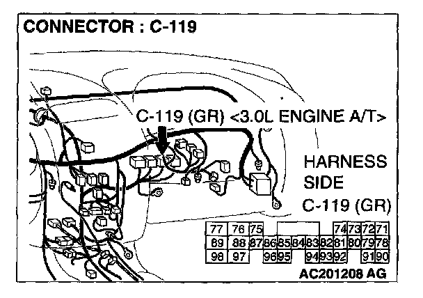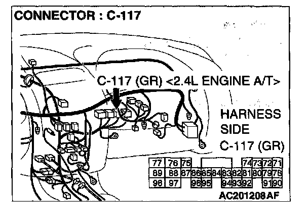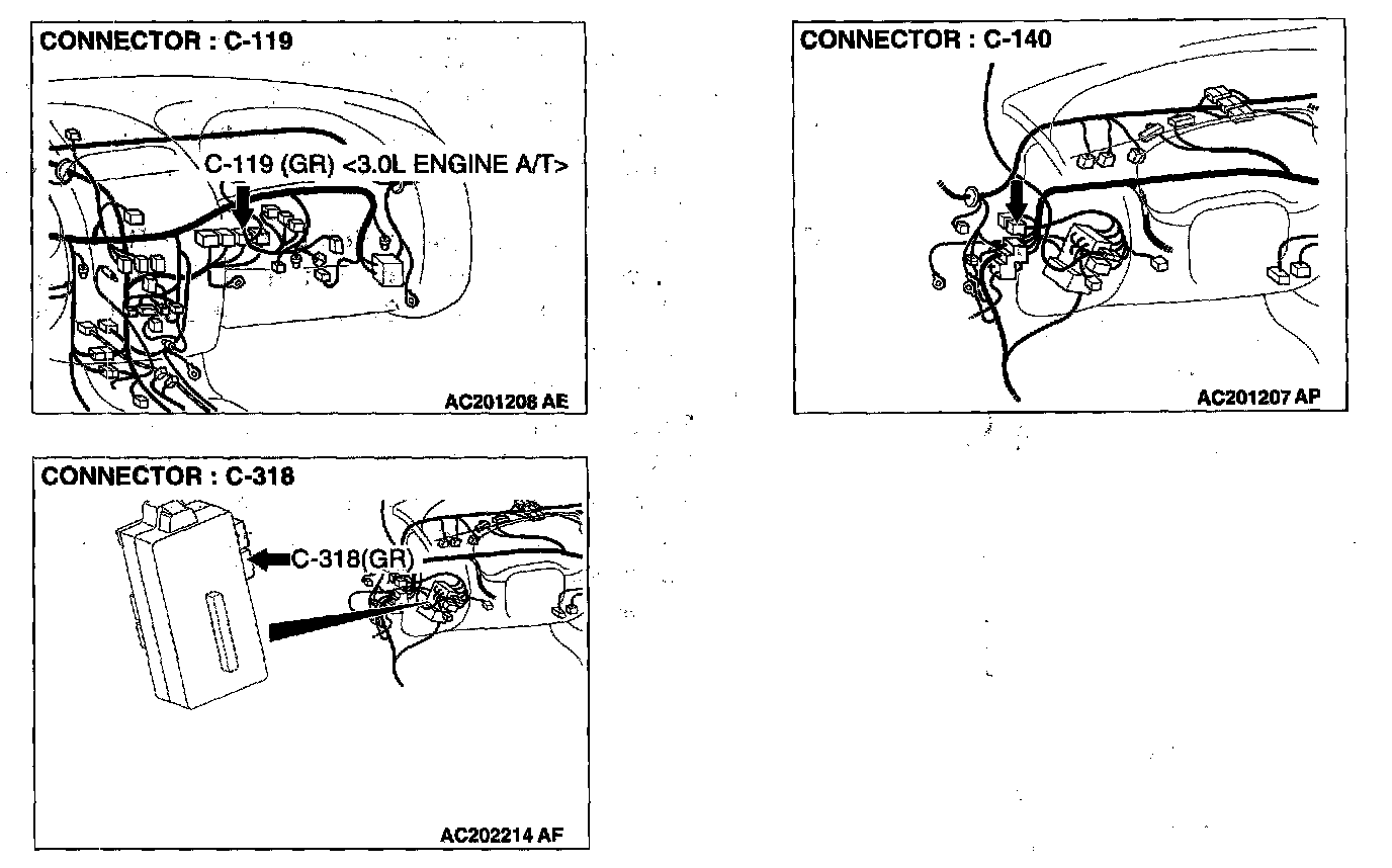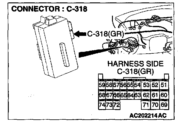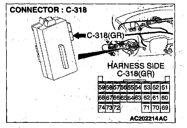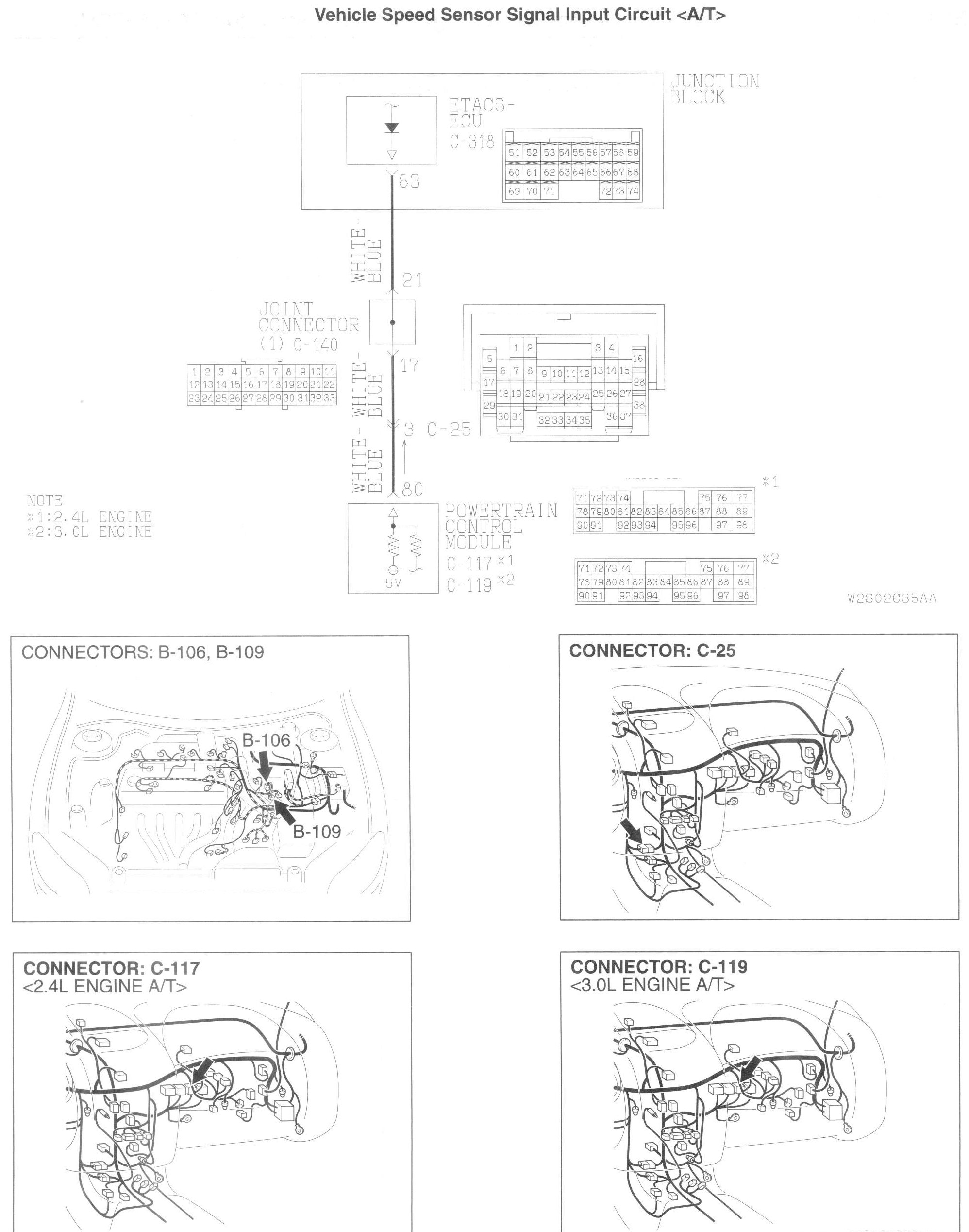 STEP 2. Check the speed sensor connector B-109 or power control module connector C-117 or C- 119 and ETACS-ECU connector C-318 for loose, corroded or damaged terminals, or terminals pushed back in the connector.