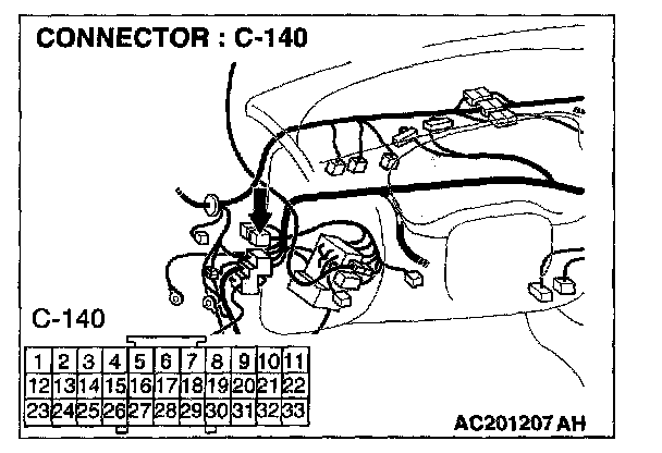 NOTE: Also check intermediate connectors B-106 and C-25 and joint connector C-140 for loose, corroded, or damaged terminals, or terminals pushed back in the connector If intermediate connectors B-106 or C-25 or joint connector C-140 are damaged, repair or replace the damaged component(s) as described in Harness Connector Inspection.