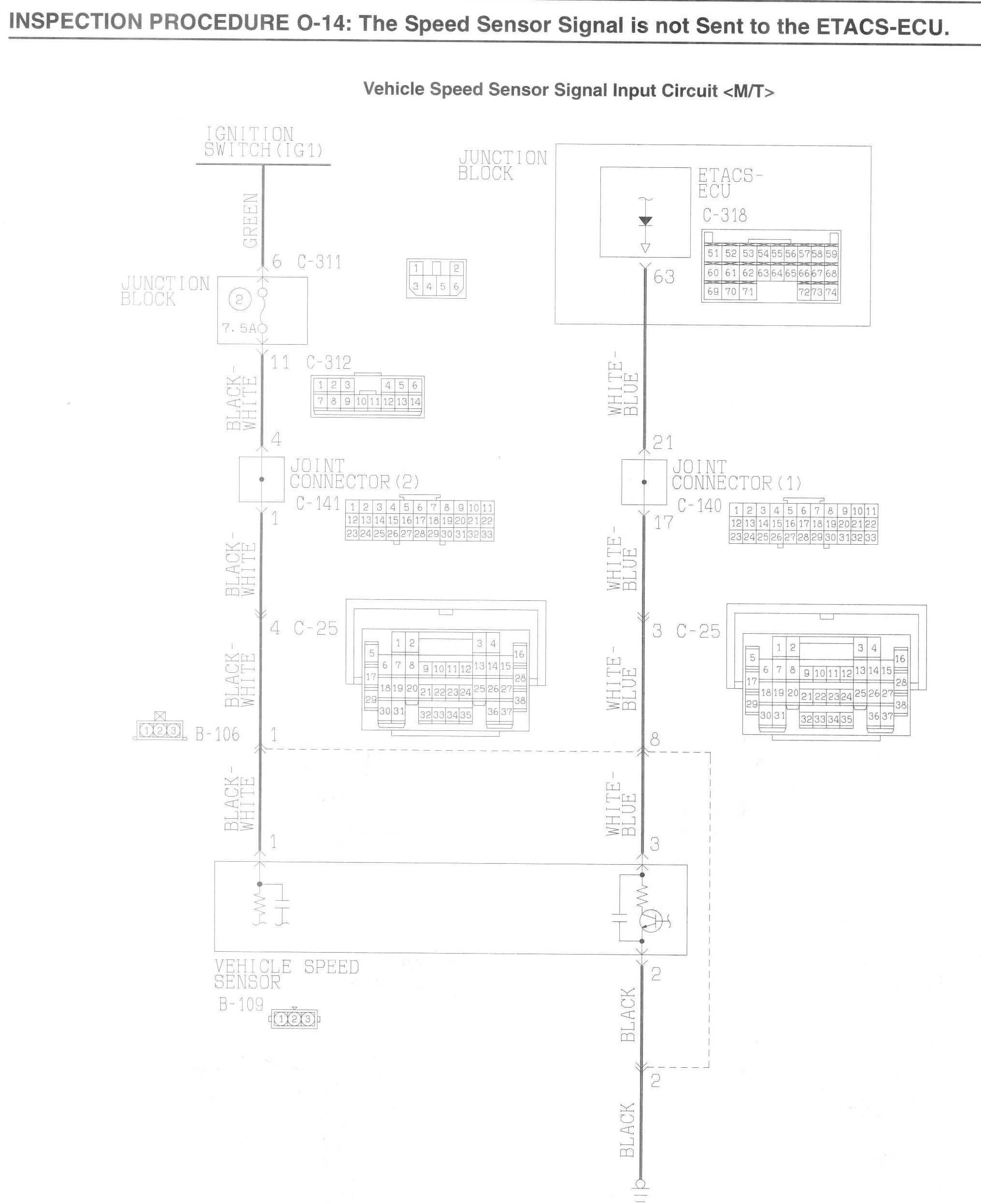 INSPECTION PROCEDURE 0-14: The Speed Sensor Signal is not Sent to the ETACS-ECU.