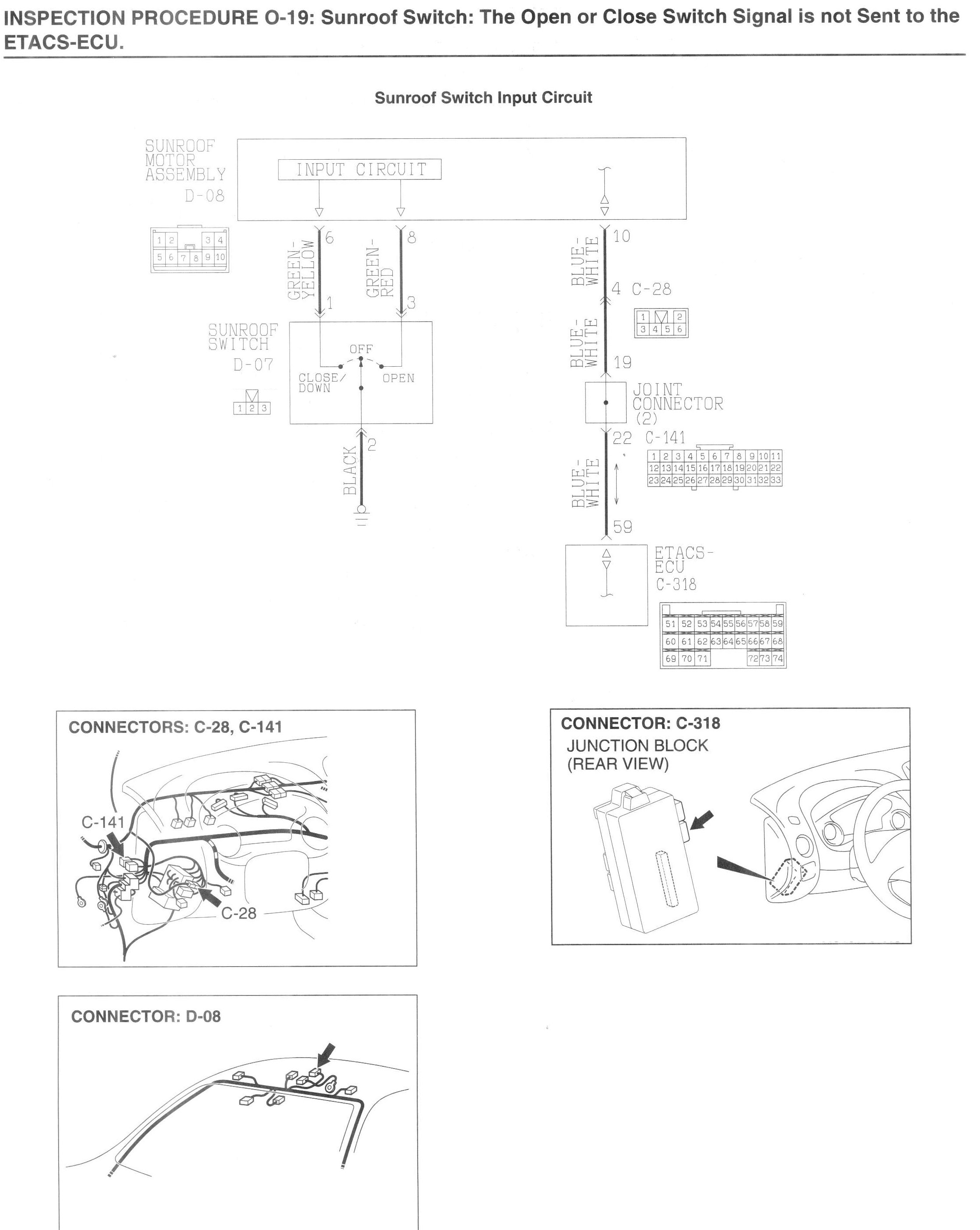 INSPECTION PROCEDURE O-19: Sunroof switch: The open or close switch signal is not sent to the ETACS-ECU.
