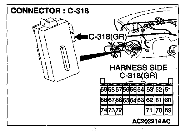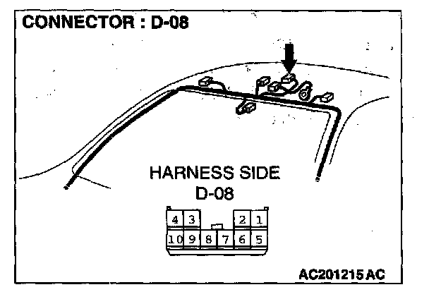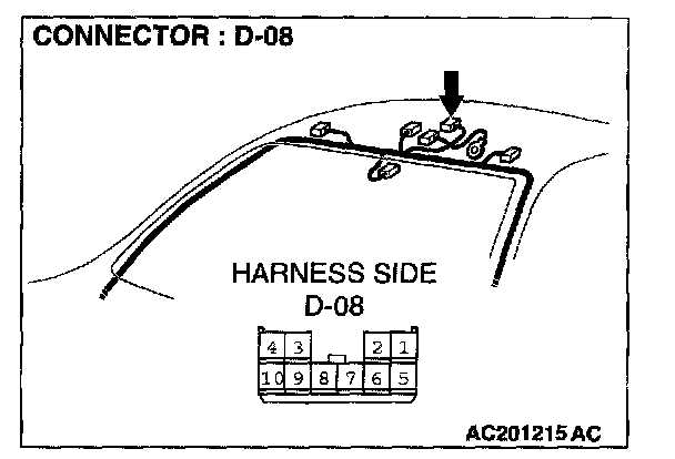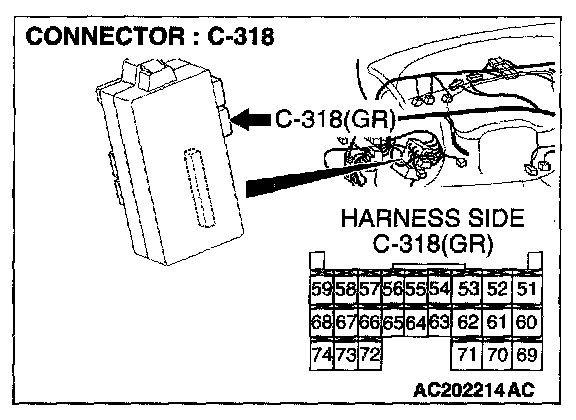 STEP 2. Check the sunroof motor assembly connector D-08 and ETACS-ECU connector C-318 for loose, corroded or damaged terminals, or terminals pushed back in the connector.
