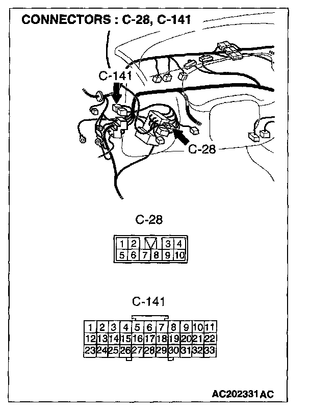 NOTE : Also check intermediate connector C-28 and joint connector C-141 for loose, corroded, or damaged terminals, or terminals pushed back in the connector If intermediate connector C-28 or joint connector C-141 are damaged, repair or replace the damaged component(s) Refer to Harness Connector Inspection.