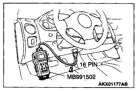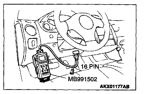 1. Connect scan tool MB991502 to the data link connector.