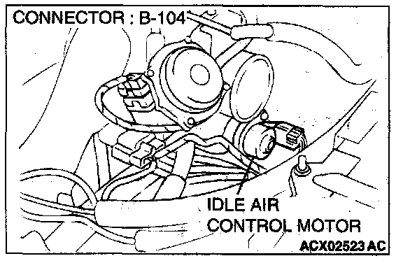 2. Check that the operation sound of the IAC motor can be heard after the ignition is switched to the "ON" position (but without starting the engine).