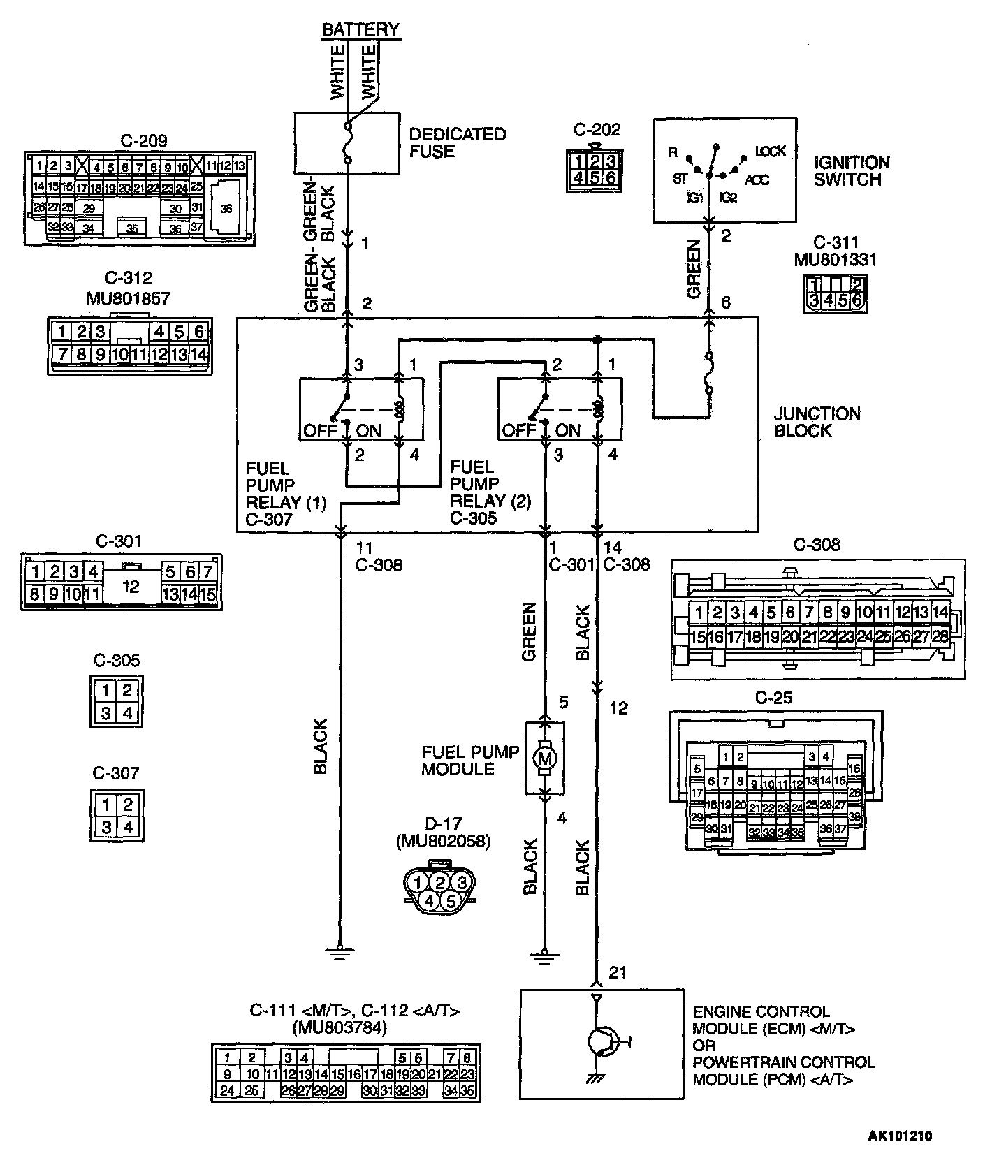 NO: Check harness connectors C-25 and C-308 at intermediate connector for damage, and repair or replace as required Refer to Harness Connector Inspection. If intermediate connectors are in good condition, repair harness wire between fuel pump relay 2 connector C-305 terminal 4 and ECM connector C-111 terminal 21