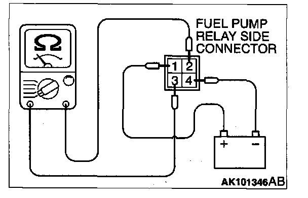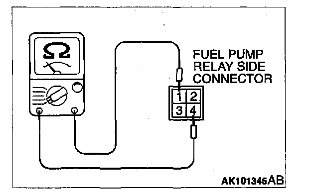 2. Check for continuity between the each fuel pump relay terminals 1 and 4.