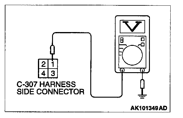 1. Disconnect the connector C-307 and measure at the harness side.