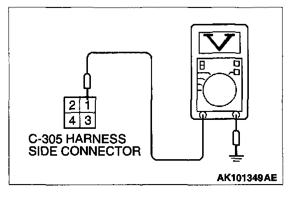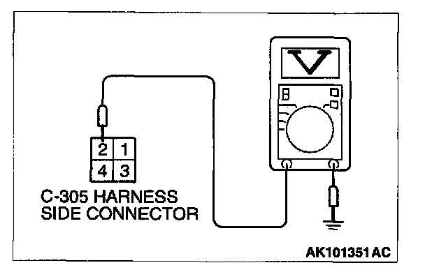 1. Disconnect the connector C-305 and measure at the harness side.