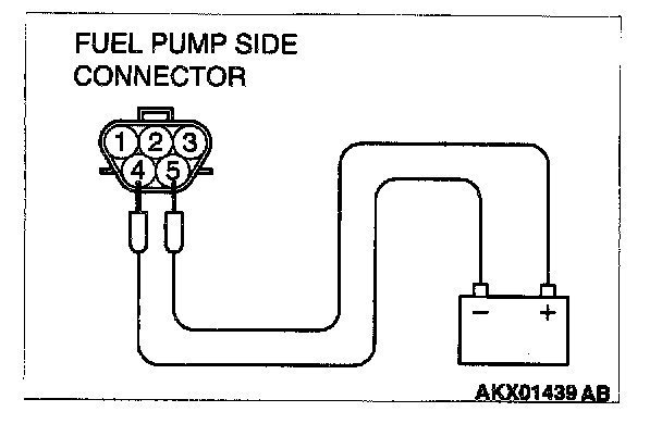 2. Use jumper wires to connect fuel pump connector terminal 5 to the positive battery terminal and terminal 4 to the negative battery terminal.