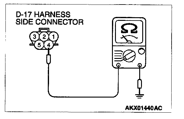 1. Disconnect the connector D-17 and measure at the harness side.