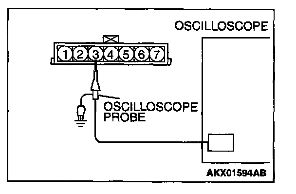 2. Connect the oscilloscope probe to volume air flow sensor connector terminal 3.