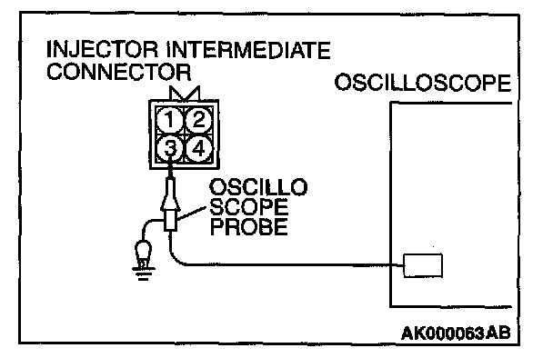 2. Connect the oscilloscope probe to each injector intermediate connector terminal to analyze each cylinder:
