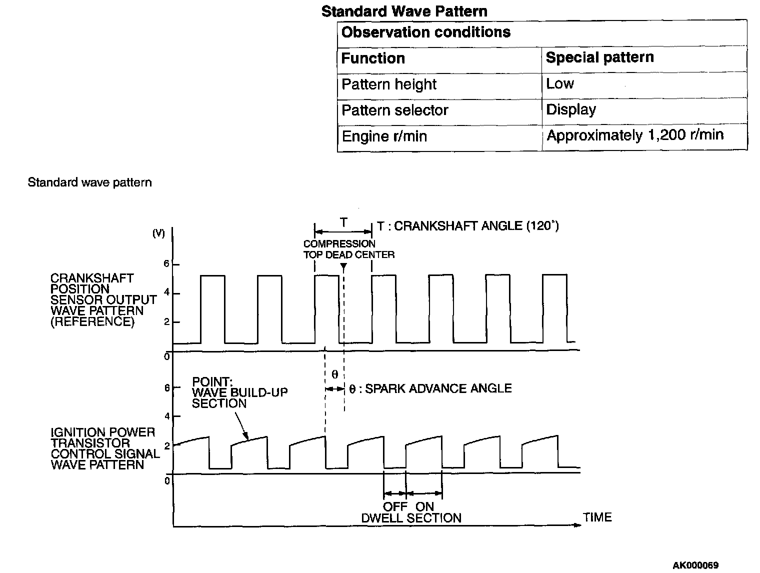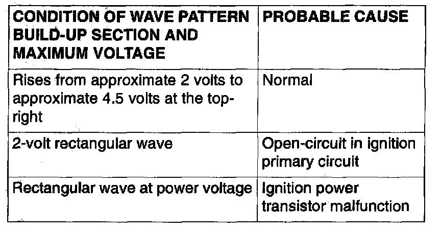 Point: Condition of wave pattern build-up section and maximum voltage (Refer to abnormal wave pattern examples 1 and 2.