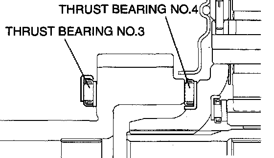 Check the installation direction of thrust bearings number 3 and 4, and install them as shown.