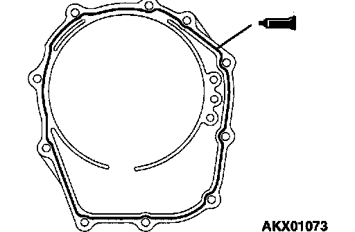 54. Apply a 2 mm (0.08 inch) diameter bead of sealant (MITSUBISHI Genuine Part number MD974421 or equivalent) to the illustrated position of the rear cover.