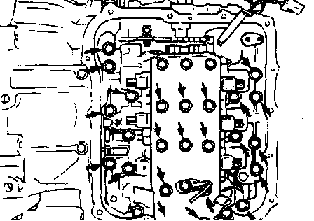 11. Remove the valve body mounting bolts (27 pieces).
