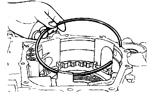 13. Remove the snap ring from the connector. Push the connector into the transaxle case and remove the solenoid valve harness.