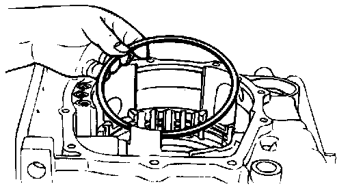 (4) Remove the one-way clutch inner race, O-ring, spring retainer, return spring and low-reverse brake piston.