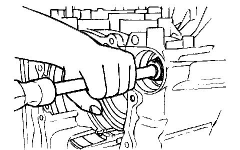22. Remove the differential bearing outer race from the transaxle case.