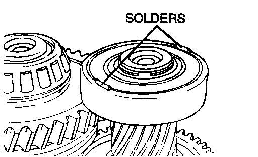 2. Put solders [1.6 mm (0.063 inch) diameter, about 1.0 mm (0.39 inch) long] on the input shaft rear bearing at the positions shown in the illustration.