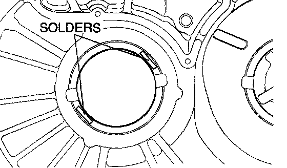 3. Put solders [1.6 mm (0.063 inch) diameter, about 10 mm (0.39 inch) long] on the transaxle case at the positions shown in the illustration.