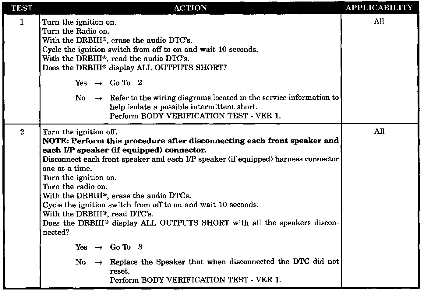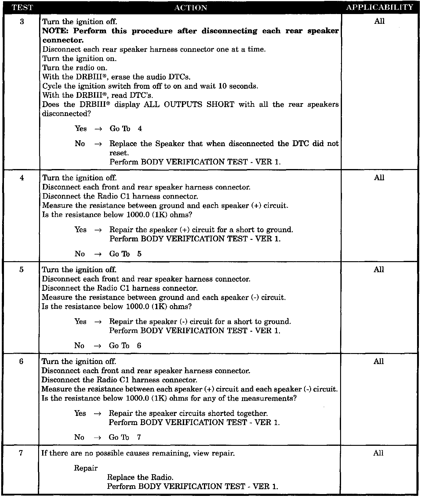 - Speaker (+) & (-) circuits shorted together