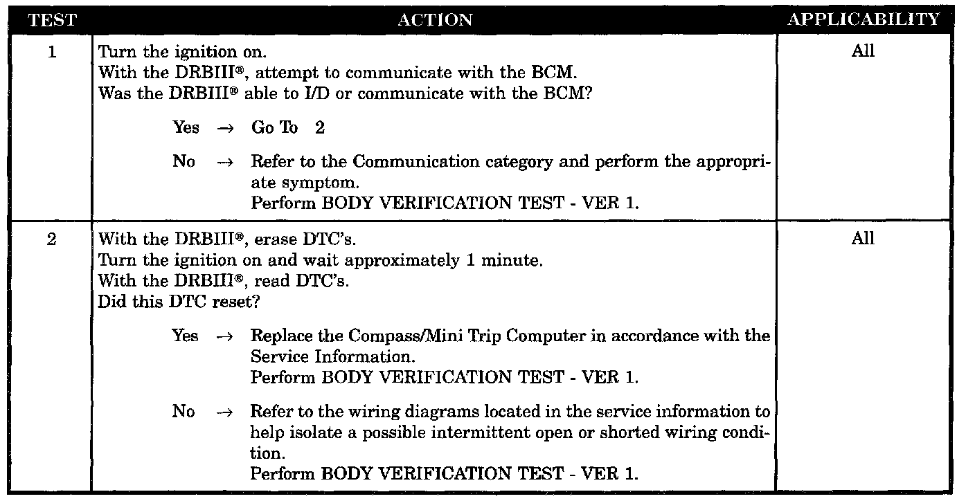 This DTC will set if the Compass/Mini Trip Computer (CMTC) does not receive messages from the BCM.
