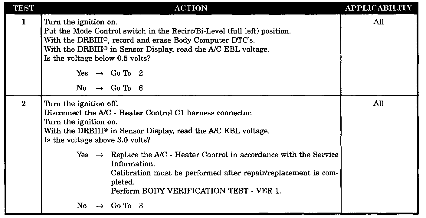 A/C HEAD, EBL INPUT SHORTED TO GROUND