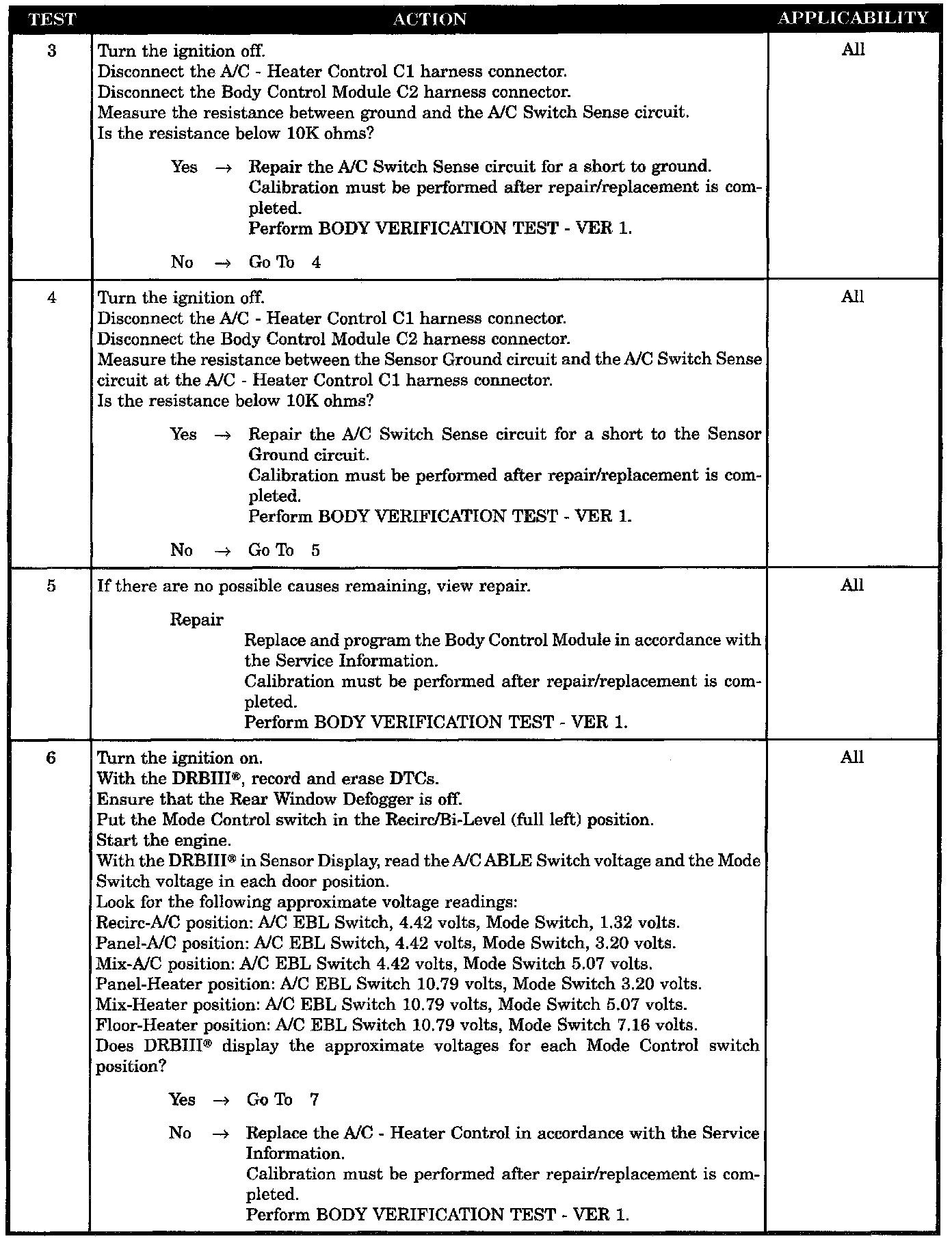 - Body control module - A/C switch sense short to ground